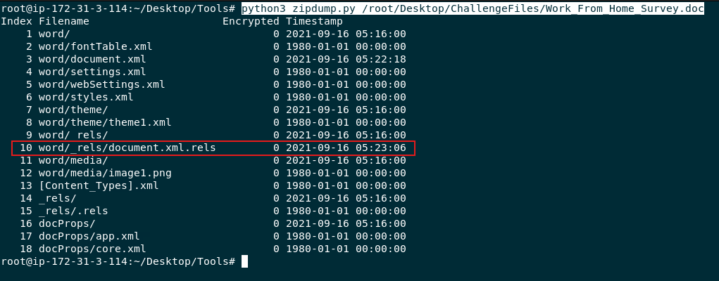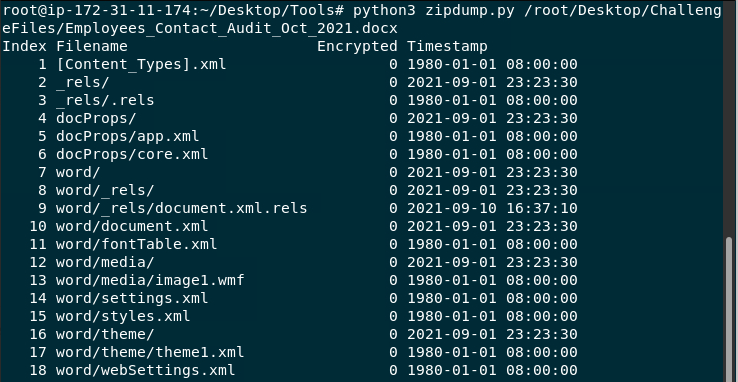python3 zipdump.py /root/Desktop/ChallengeFiles/Employees_Contact_Audit_Oct_2021.docx
