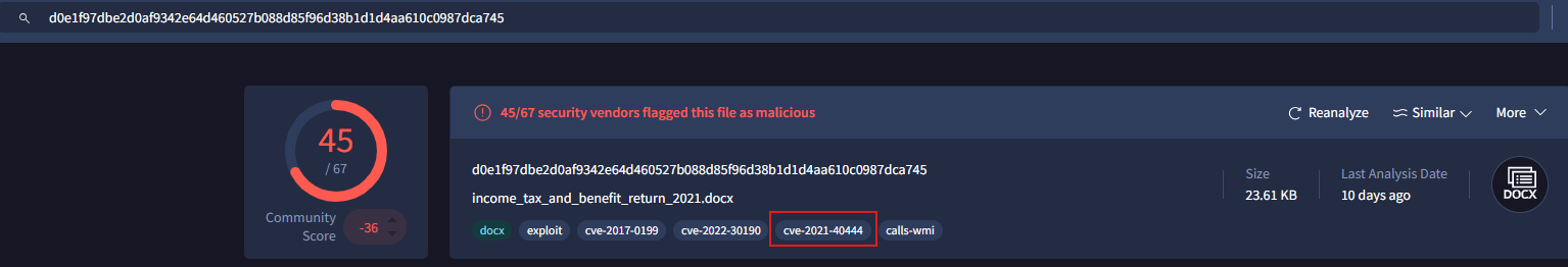 Este desafio consta de analizar cuatro documentos maliciosos (maldoc), descubrir direcciones IP y Dominios ocultos y usar la informacion para averiguar qué vulnerabilidad o CVE está explotando el actor de amenaza.